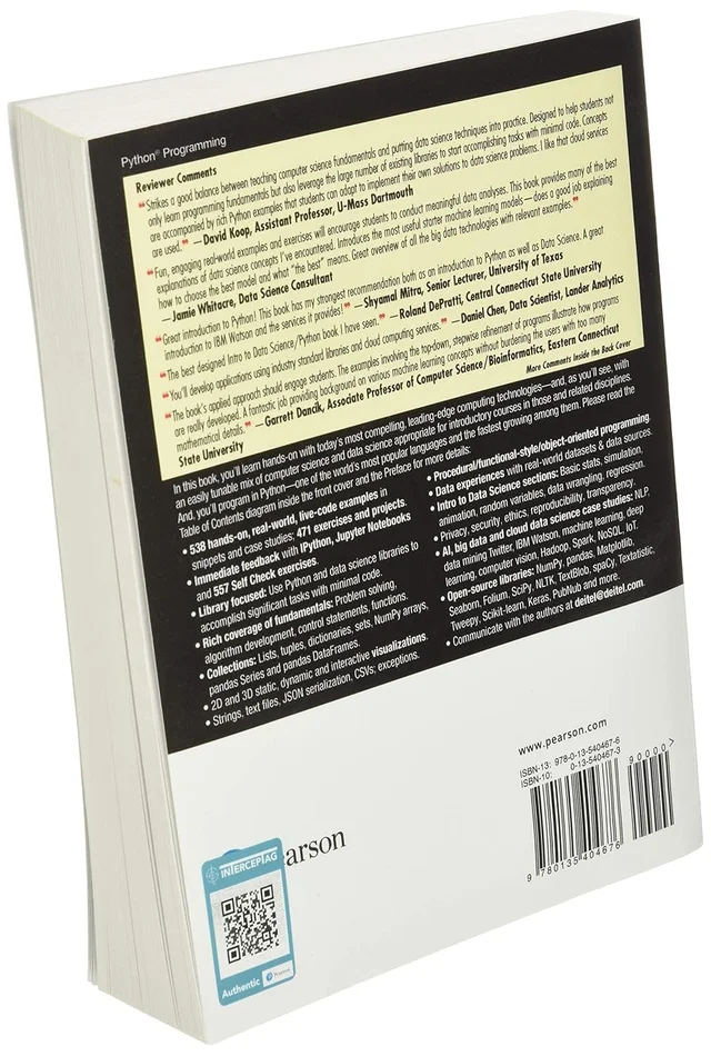 The book’s modular architecture enables instructors to conveniently adapt the text to a wide range of computer-science and data-science courses offered to audiences drawn from many majors. Computer-science instructors can integrate as much or as little data-science and artificial-intelligence topics as they’d like, and data-science instructors can integrate as much or as little Python as they’d like. The book aligns with the latest ACM/IEEE CS-and-related computing curriculum initiatives and with the Data Science Undergraduate Curriculum Proposal sponsored by the National Science Foundation.