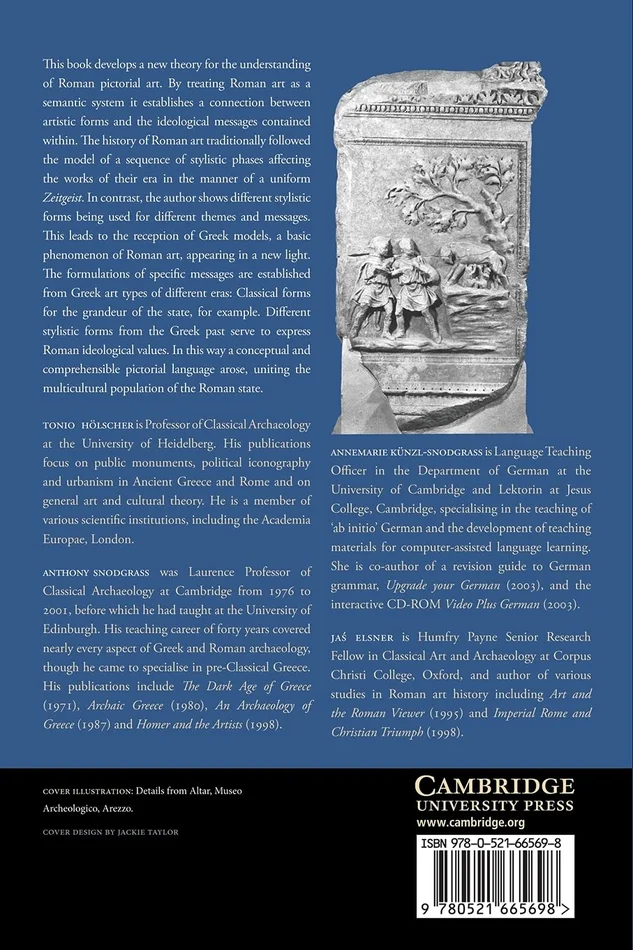 Tonio H?lscher develops a new theoretical concept for understanding the Roman art of images by establishing a connection between artistic forms and content and expressions of ideology–such as the glorification of state and ruler, war and triumph. A large role is played here by the reception of earlier images from Greek art. Roman art therefore appears to operate as a semantic system which, from an interdisciplinary perspective, can be compared with the forms of Roman literature as well as the language of images of other cultures.