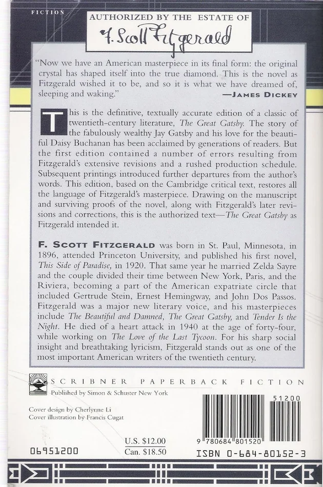 The story of the fabulously wealthy Jay Gatsby and his love for the beautiful Daisy Buchanan has been acclaimed by generations of readers. But the first edition contained a number of errors resulting from Fitzgerald’s extensive revisions and a rushed production schedule. Subsequent printings introduced further departures from the author’s words. This edition, based on the Cambridge critical text, restores all the language of Fitzgerald’s masterpiece. Drawing on the manuscript and surviving proofs of the novel, along with Fitzgerald’s later revisions and corrections, this is the authorized text —