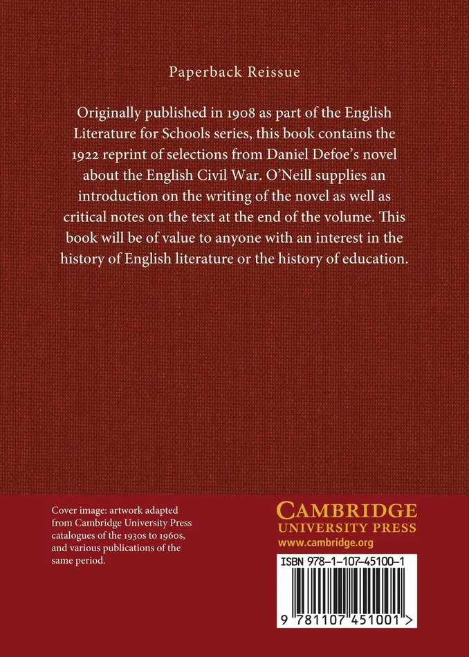 Originally published in 1908 as part of the English Literature for Schools series, this book contains the 1922 reprint of selections from Daniel Defoe’s novel about the English Civil War. O’Neill supplies an introduction on the writing of the novel as well as critical notes on the text at the end of the volume. This book will be of value to anyone with an interest in the history of English literature or the history of education.