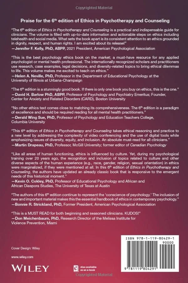 Practical discussions of special topics in ethics, including informed consent and informed refusal, using strategies for self-care, responding to ethics, licensing, and malpractice complaints, and confidentiality.