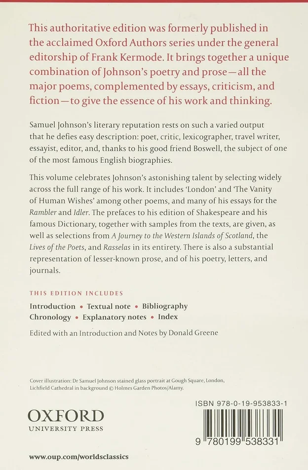 . The prefaces to his edition of Shakespeare and his famous Dictionary, together with samples from the texts, are given, as well as selections from