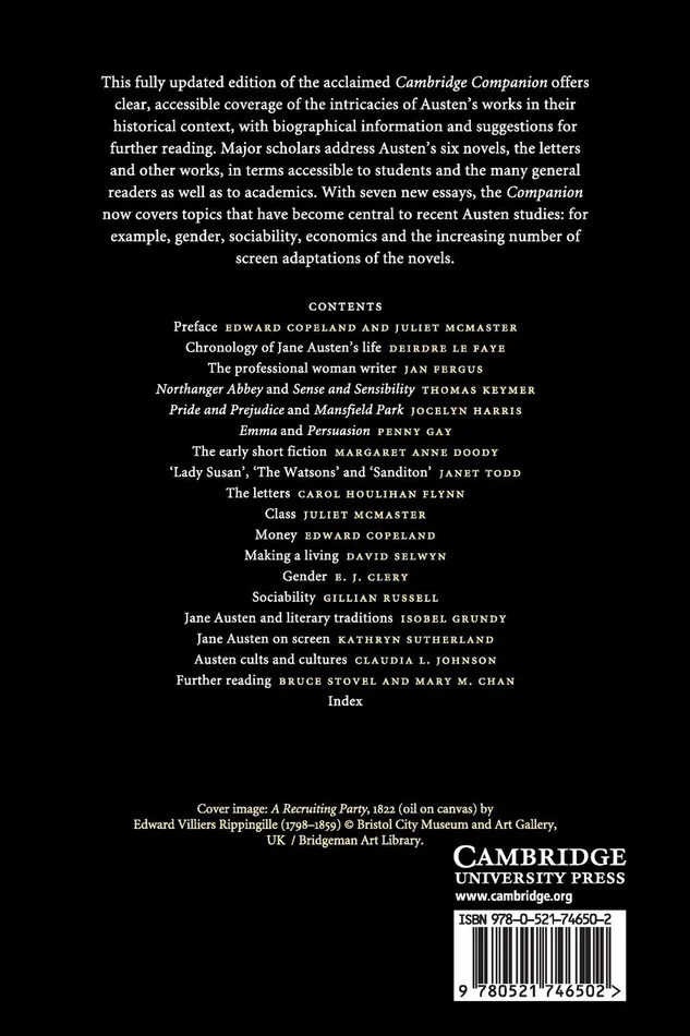 Jane Austen’s stock in the popular marketplace has never been higher, while academic studies continue to uncover new aspects of her engagement with her world. This fully updated edition of the acclaimed Cambridge Companion offers clear, accessible coverage of the intricacies of Austen’s works in their historical context, with biographical information and suggestions for further reading. Major scholars address Austen’s six novels, the letters and other works, in terms accessible to students and the many general readers, as well as to academics. With seven new essays, the Companion now covers topics that have become central to recent Austen studies, for example, gender, sociability, economics, and the increasing number of screen adaptations of the novels.