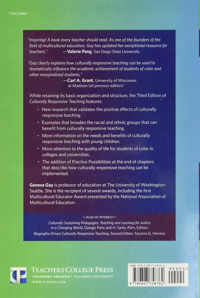 The addition of Practice Possibilities at the end of chapters that describe how culturally responsive teaching can be implemented.