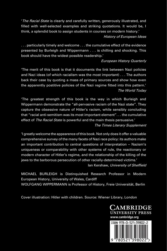 Between 1933 and 1945 the Nazi regime in Germany tried to restructure a “class” society along racial lines. This book deals with the ideas and institutions that underpinned this mission, and shows how Nazi policy affected various groups of people, both victims and beneficiaries. The book begins with a serious discussion of the origins of Nazi racial ideology, and then demonstrates the way in which this was translated into official policy. It deals with the systematic persecution not only of the Jews, but also with the fate of lesser-known groups such as Sinti and Roma, the mentally handicapped, the “asocial,” and homosexuals.