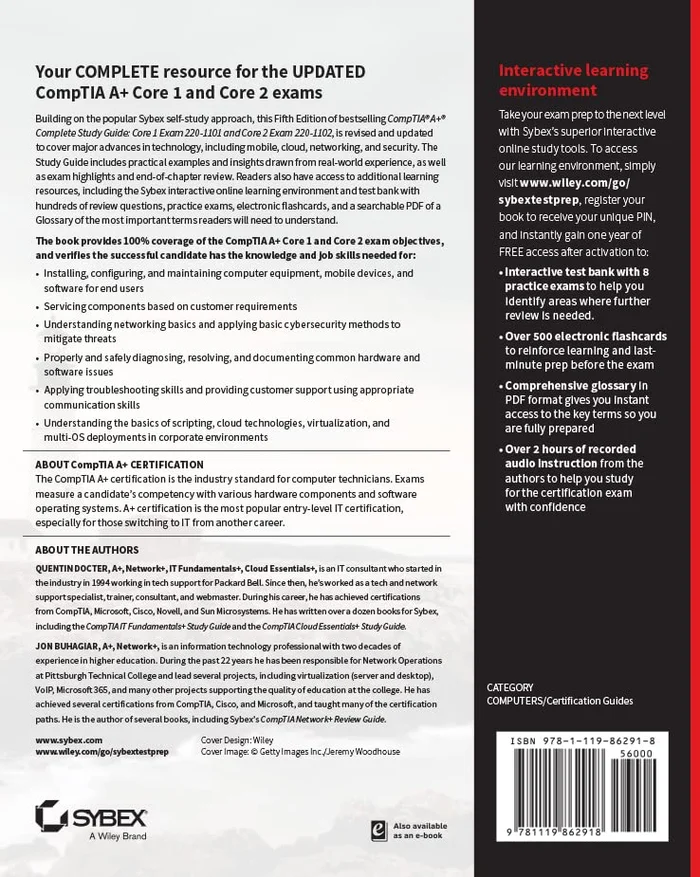 Access to the Sybex online test bank, with chapter review questions, full-length practice exams, hundreds of electronic flashcards, and a glossary of key terms, all supported by Wiley’s support agents who are available 24×7 via email or live chat to assist with access and login questions