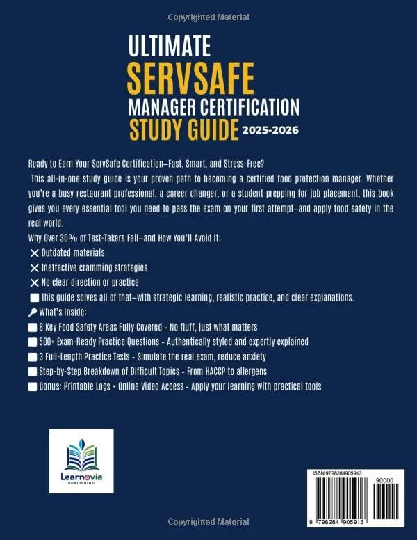 This all-in-one study guide is your proven path to becoming a certified food protection manager. Whether you*re a busy restaurant professional, a career changer, or a student prepping for job placement, this book gives you