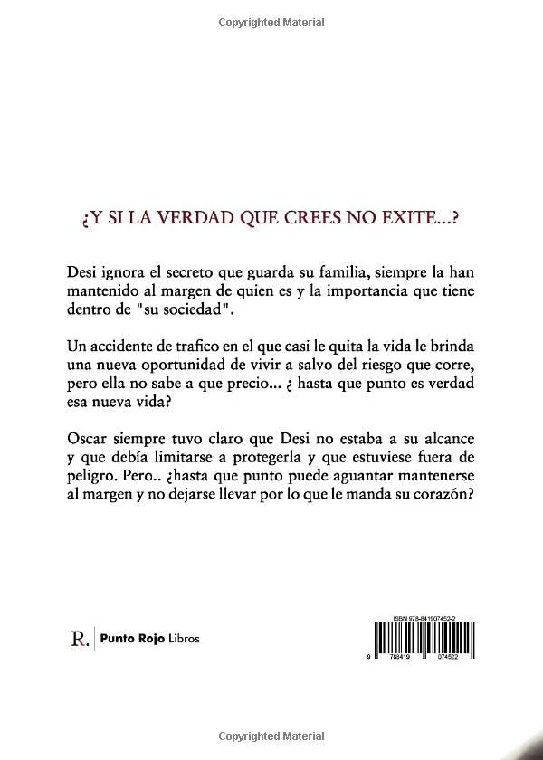 Desi ignora el secreto que guarda su familia, siempre la han mantenido al margen de quien es y la importancia que tiene dentro de “su sociedad”. Un accidente de trafico en el que casi le quita la vida le brinda una nueva oportunidad de vivir a salvo del riesgo que corre, pero ella no sabe a que precio… ? hasta que punto es verdad esa nueva vida? Oscar siempre tuvo claro que Desi no estaba a su alcance y que deb赤a limitarse a protegerla y que estuviese fuera de peligro. Pero.. ?hasta que punto puede aguantar mantenerse al margen y no dejarse llevar por lo que le manda su coraz車n?