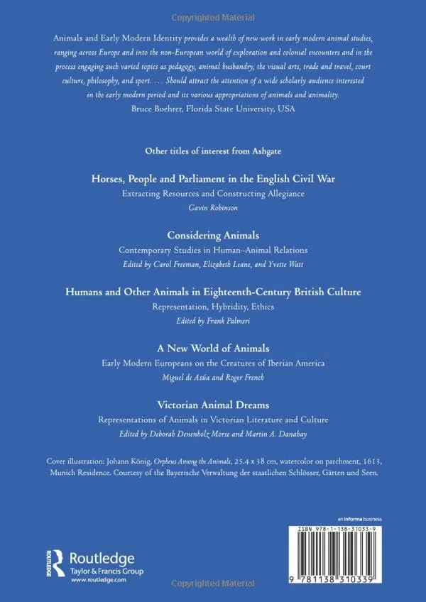 Animals were everywhere in the early modern period and they impacted, at least in some way, the lives of every kind of early modern person, from the humblest peasant to the greatest prince. Artists made careers based on depicting them. English gentry impoverished themselves spending money on them. Humanists exercised their scholarship writing about them. Pastors saved souls delivering sermons on them. Nobles forged alliances competing with them. Foreigners and indigenes negotiated with one another through trading them. The nexus between animal-human relationships and early modern identity is illuminated in this volume by the latest research of international scholars working on the history of art, literature, and of sixteenth- and seventeenth-century Germany, France, England, Spain, and South Africa. Collectively, these essays investigate how animals – horses, dogs, pigs, hogs, fish, cattle, sheep, birds, rhinoceroses, even sea-monsters and other creatures – served people in Europe, England, the Americas, and Africa to defend, contest or transcend the boundaries of early modern identities. Developments in the methodologies employed by scholars to interrogate the past have opened up an intellectual and discursive space for – and a concomitant recognition of – the study of animals as a topic that significantly elucidates past and present histories. Relevant to a considerable array of disciplines, the study of animals also provides a means to surmount traditional disciplinary boundaries through processes of dynamic interchange and cross-fertilization.