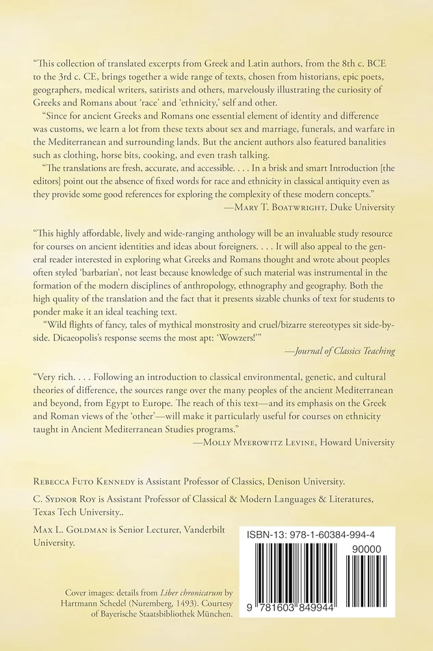 By offering fluent, accurate translations of extracts and fragments from a wide assortment of ancient texts, this volume allows a comprehensive overview of ancient Greek and Roman concepts of otherness, as well as Greek and Roman views of non-Greeks and non-Romans. A general introduction, thorough annotation, maps, a select bibliography, and an index are also included.