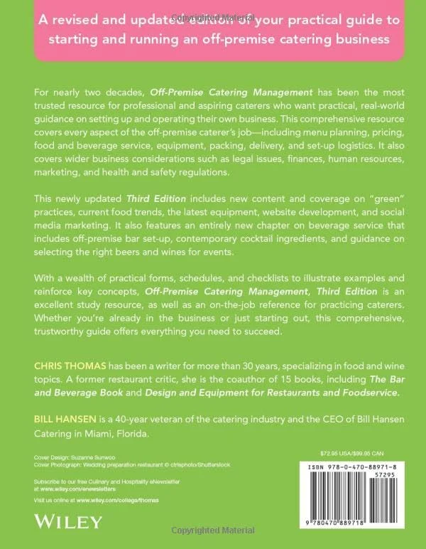 has been the trusted resource professional and aspiring caterers turn to for guidance on setting up and managing a successful off-premise catering business. This comprehensive reference covers every aspect of the caterer’s job, from menu planning, pricing, food and beverage service, equipment, and packing, delivery, and set-up logistics, to legal considerations, financial management, human resources, marketing, sanitation and safety, and more. This new Third Edition has been completely revised and updated to include the latest industry trends and real-life examples.