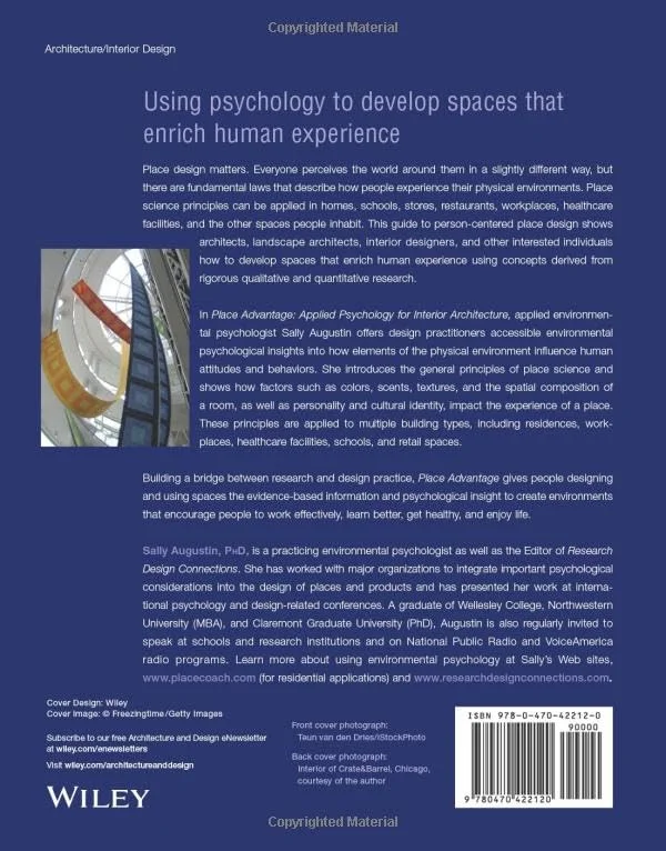 , applied environmental psychologist Sally Augustin offers design practitioners accessible environmental psychological insights into how elements of the physical environment influence human attitudes and behaviors. She introduces the general principles of place science and shows how factors such as colors, scents, textures, and the spatial composition of a room, as well as personality and cultural identity, impact the experience of a place. These principles are applied to multiple building types, including residences, workplaces, healthcare facilities, schools, and retail spaces.