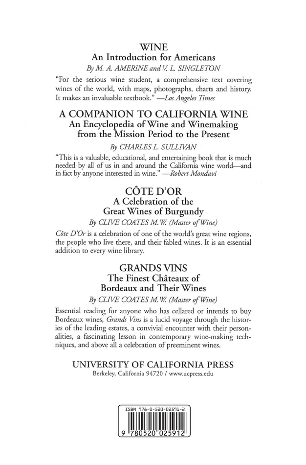 This new edition has been revised throughout. The chapters on vine structure, vine physiology, the grape flower and berry set, development and composition of grapes, and means of improving grape quality add to our knowledge of the vine and its functions. The text is designed to enable those concerned with either vine or fruit problems to arrive at considered diagnoses. The student will find the text and the cited references a comprehensive source of information.