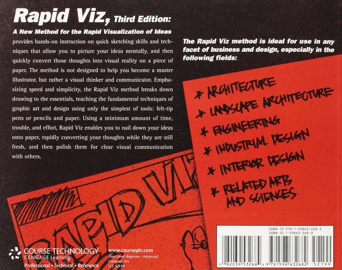Rapid Viz, Third Edition: A New Method for the Rapid Visualization of Ideas provides hands-on instruction on quick sketching skills and techniques that allow you to picture your ideas mentally, and then quickly convert those thoughts into visual reality on a piece of paper. The method is not designed to help you become a master illustrator, but rather a visual thinker and communicator. Emphasizing speed and simplicity, the Rapid Viz method breaks down drawing to the essentials, teaching the fundamental techniques of graphic art and design using only the simplest of tools: felt-tip pens or pencils and paper. Using a minimum amount of time, trouble, and effort, Rapid Viz enables you to nail down your ideas onto paper, rapidly converting your thoughts while they are still fresh, and then polish them for clear visual communication with others.
