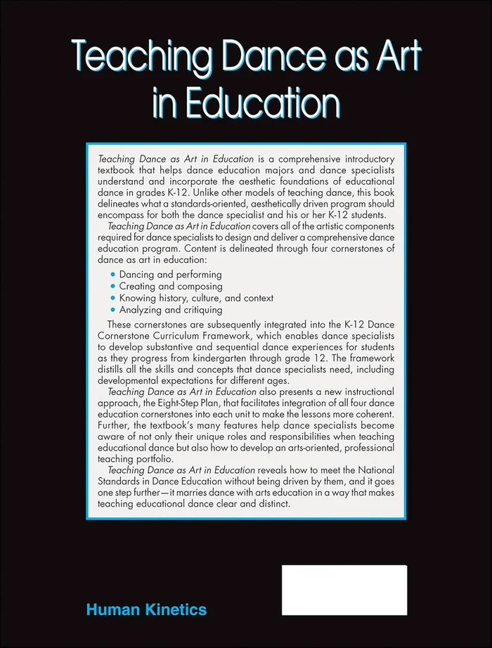 is a comprehensive introductory textbook that helps dance education majors and dance specialists understand and incorporate the aesthetic foundations of educational dance in grades K-12. Unlike other models of teaching dance, this book delineates what a standards-oriented, aesthetically driven program should encompass for both the dance specialist and his or her K-12 students.
