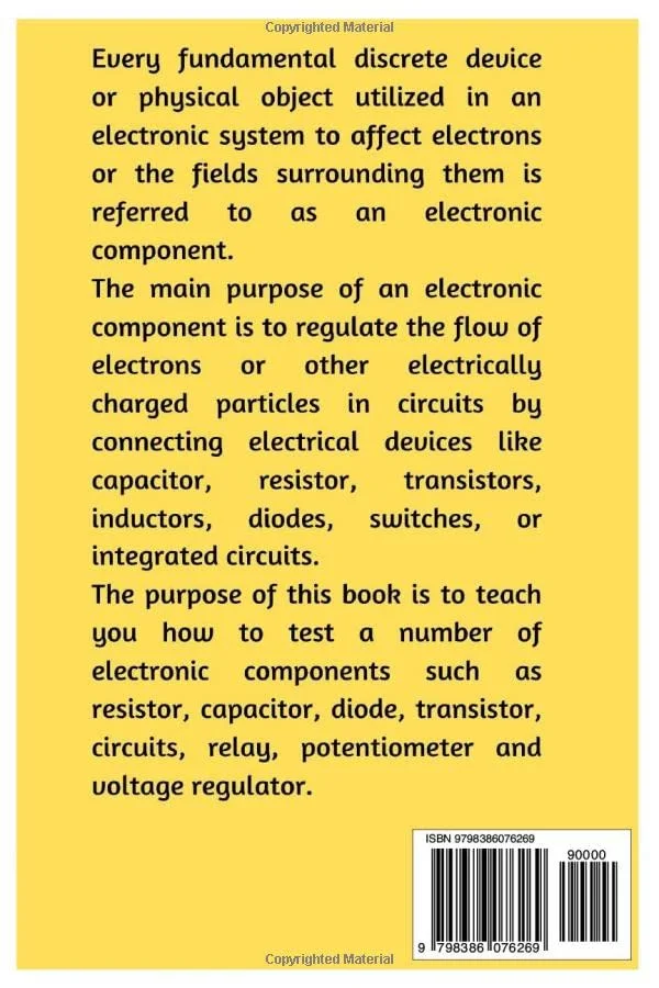 The purpose of this book is to teach you how to test a number of electronic components such as resistor, capacitor, diode, transistor, circuits, relay, potentiometer and voltage regulator.