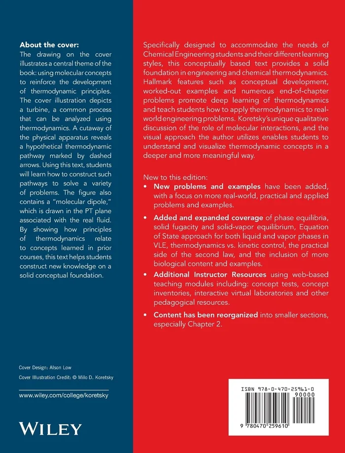 Specifically designed to accommodate students with different learning styles, this text helps establish a solid foundation in engineering and chemical thermodynamics. Clear conceptual development, worked-out examples and numerous end-of-chapter problems promote deep learning of thermodynamics and teach students how to apply thermodynamics to real-world engineering problems.