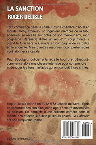 La sanction est un thriller de Roger Delisle, un auteur qu谷b谷cois. Paul Bouchard, policier 角 la retraite, enqu那te sur la mort myst谷rieuse d*un informaticien canadien d*origine ha?tienne, poignard谷 en Floride au cours de ses vacances. Endormi dans la m那me chambre que lui, Roby O Sawin, un Am谷rindien, constate avec horreur, 角 son r谷veil, le meurtre de son meilleur ami. Se croyant victime d*un coup mont谷 visant 角 l*inculper, il prend la fuite 角 travers les 谷tats-Unis, en compagnie de sa petite amie, enceinte. Mais d*autres meurtres incompr谷hensibles vont jalonner sa cavale. Commence alors pour Bouchard une chasse intensive pour comprendre et d谷nouer les liens multiples qui ont conduit 角 ces crimes.