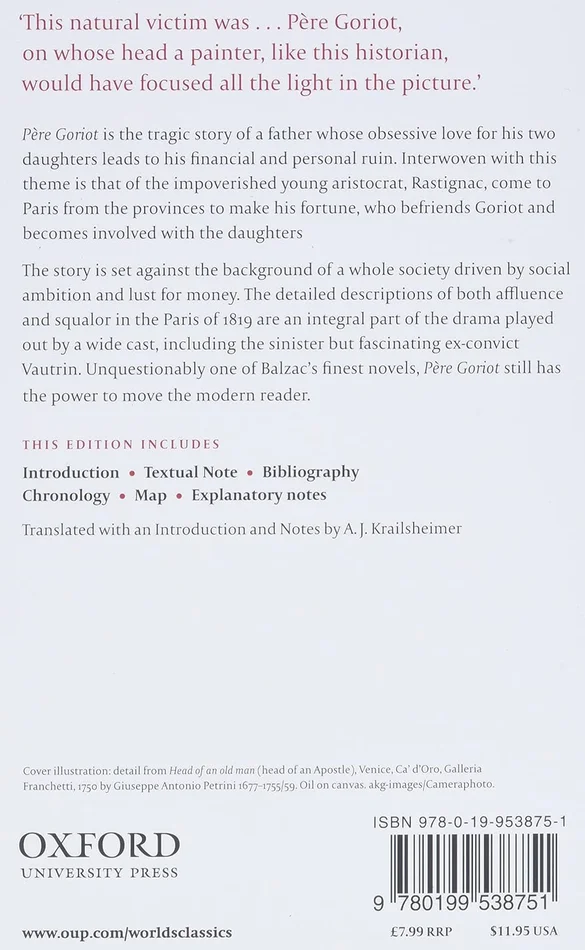 This fine example of the French realist novel contrasts the social progress of an impoverished but ambitious aristocrat with the tale of a father, whose obsessive love for his daughters leads to his personal and financial ruin.