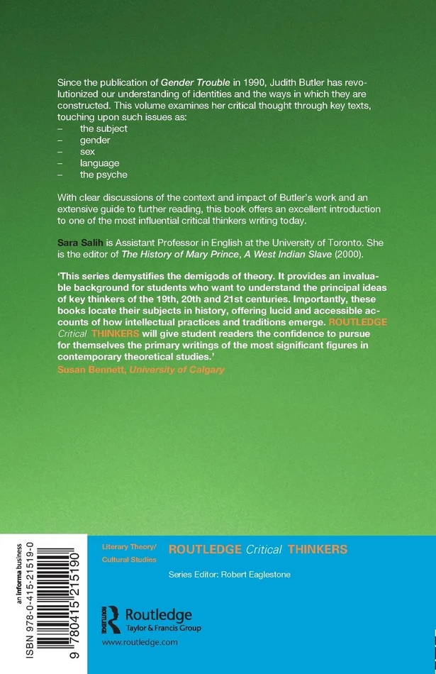 in 1990, Judith Butler has revolutionised our understanding of identities and the ways in which they are constructed. This volume examines her critical thought through key texts, touching upon such issues as: