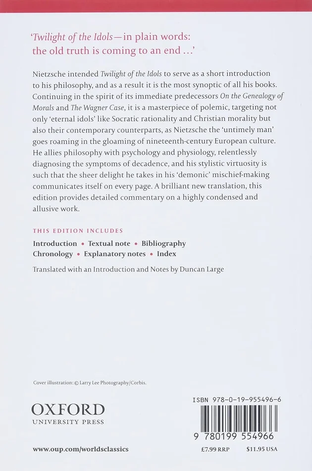 . Nietzsche’s own unabashed appraisal of the last work intended to serve as a short introduction to the whole of his philosophy, and the most synoptic of all his books, bristles with a register of vocabulary derived from physiology, pathology, symptomatalogy and medicine. This new translation is supplemented by an introduction and extensive notes, which provide close analysis of a highly condensed work.