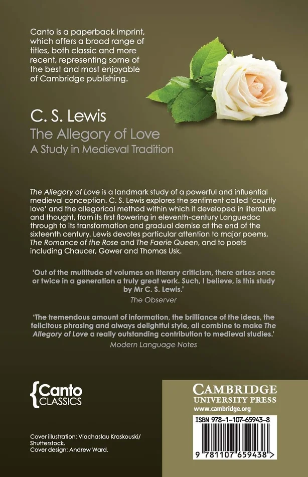 The Allegory of Love is a landmark study of a powerful and influential medieval conception. C. S. Lewis explores the sentiment called ‘courtly love’ and the allegorical method within which it developed in literature and thought, from its first flowering in eleventh-century Languedoc through to its transformation and gradual demise at the end of the sixteenth century. Lewis devotes particular attention to the major poems The Romance of the Rose and The Faerie Queene, and to poets including Chaucer, Gower and Thomas Usk.