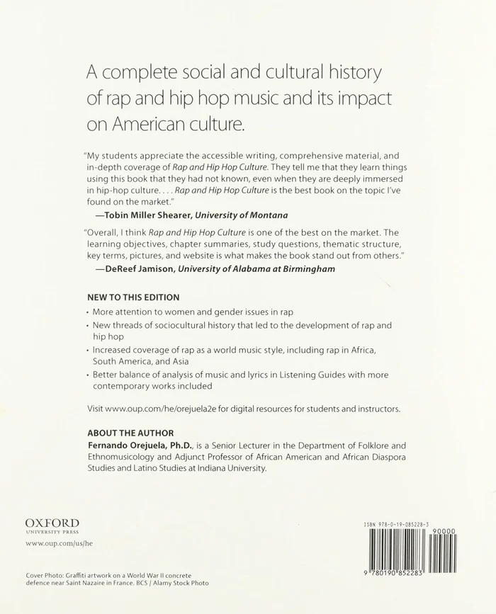 traces the ideological, social, historical, and cultural influences on a musical genre that first came to prominence in the mid-1970s in one of New York’s toughest neighborhoods, the South Bronx. Orejuela describes how the arts of DJing, MCing, breakin’ [b-boying], and graffiti developed as a way for this community’s struggle to find its own voice. He addresses rap’s early successes on the pop charts; its spread to mainstream culture; the growth of “gangsta rap” and mainstream society’s reaction to it; the commercial success of rap music from the ’90s through today; and the diffusion of hip hop throughout the world as a global phenomnenon. Throughout, this enlightening text highlights key performers, producers, and voices in the rap and hip hop movements, using their stories to illuminate the underlying issues of racism, poverty, prejudice, and artistic freedom that are part of rap and hip hop’s ongoing legacy.