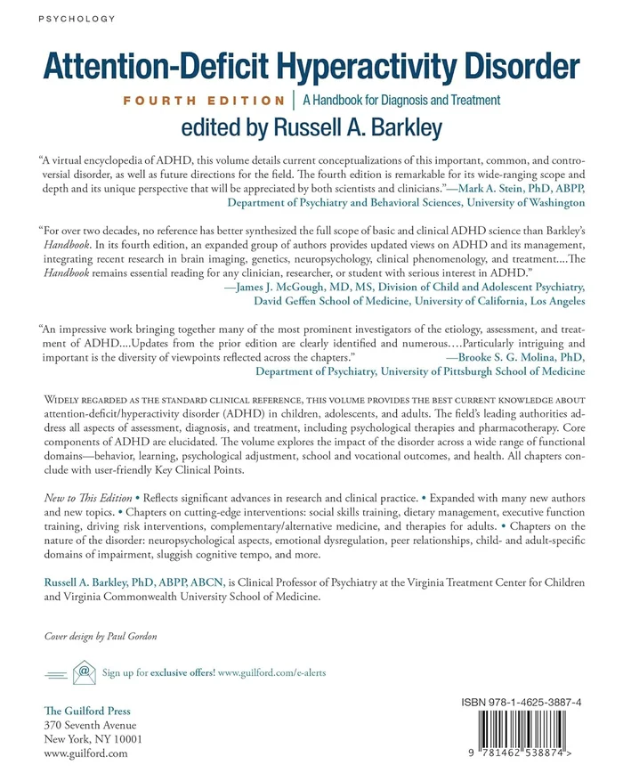 Chapters on the nature of the disorder: neuropsychological aspects, emotional dysregulation, peer relationships, child- and adult-specific domains of impairment, sluggish cognitive tempo, and more.