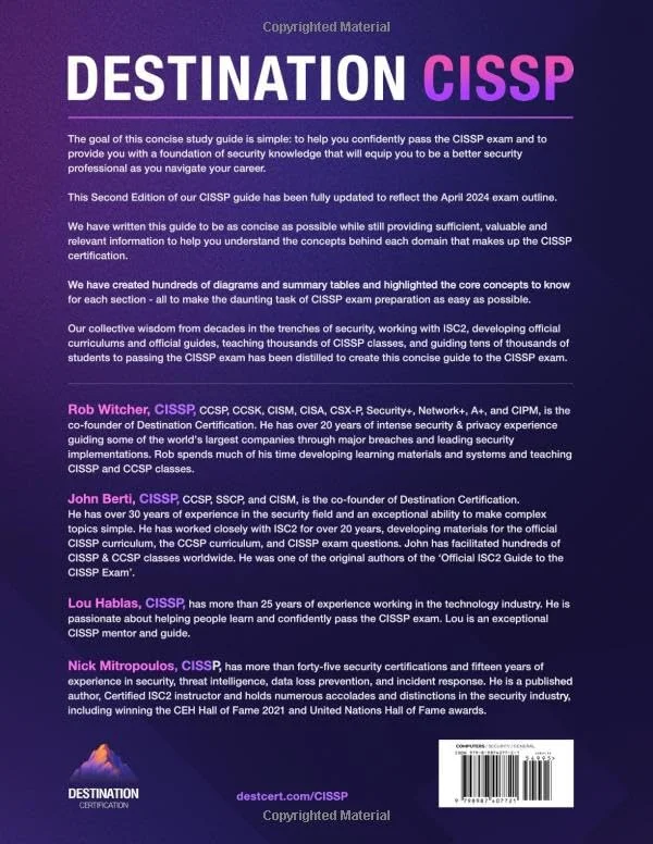 NEW SECOND EDITION ALIGNED WITH ISC2’S 2024 EXAM OUTLINE. The goal of this concise study guide is simple: to help you confidently pass the CISSP exam and to provide you with a foundation of security knowledge that will equip you to be a better security professional as you navigate your career.