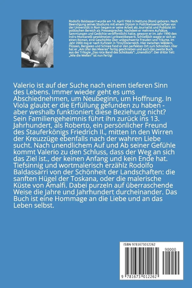 Der zweite Roman der Trilogie ※Das rote Band des Schicksals※ mit dem Titel ?Unendlich※ von Rodolfo Baldassarri ist die Geschichte von Valerio, vom Abschiednehmen, von Neubeginn, von Hoffnung und vor allem von der Liebe. Der Autor f邦hrt uns mit gro?er erz?hlerischer Kunstfertigkeit an die verschiedensten Schaupl?tze der Geschichte seines Protagonisten, der auf der verzweifelten Suche nach tiefer Zugeh?rigkeit, die doch immer wieder, oft auch durch sein eigenes Unverm?gen, zunichtegemacht wird. Er ist auf der Suche nach einem tieferen Sinn des Lebens, den er in Viola, seiner Geliebten sucht, und kommt schlie?lich nach unendlichen Wirren seiner Gef邦hle zu dem Schluss, dass der Weg an sich das Ziel ist, der kein Anfang und kein Ende hat. So f邦hrt uns der Autor sogar bis zu den Wirren der Kreuzfahrten im 12. Jahrhundert und gibt uns sehr private Einblicke in das Leben vom Stauferk?nig Friedrich II., der mit dem Alter Ego des Protagonisten eine tiefe Freundschaft eingeht. Es ist, als w邦rde uns der Autor an die Hand nehmen und uns all die Orte seiner Erz?hlung f邦hren und sie uns mit seinen Augen sehen lassen. In diesem Teil erfahren wir 邦ber die tieferen Zusammenh?nge, die f邦r das Leben von Valerio richtungsweisend sind und ihm keine andere Wahl lassen, als seine Leidenschaft immer wieder aufs Neue aufs Spiel zu setzen und zu vernichten. Nach jedem Schicksalsschlag steht Valerio wieder auf, manchmal unter gr??ten M邦hen, und nimmt seinen Weg wieder auf. Wir begleiten ihn durch die Geschichten, die das Leben selbst schreibt, durch Freuden und Leiden, durch seine h?chsten Ekstasen im Liebesrausch und durch die einsamen, grauen Stunden in einem Hotelzimmer, durch die gro?e Genugtuung, die er mit dem Erfolg seines ersten Romans erf?hrt und durch die Zeit, die er an der Seite einer geliebten Frau verbringt, w?hrend sie gegen ihre Krankheit k?mpft und diesen Kampf schlie?lich verliert. Immer wieder beginnt er von Neuem und das Triebwerk in seinem Leben ist immer wieder die Liebe, nur sie allein hat die Kraft, Welten zu bewegen. Nach etlichen Irrungen und Wirrungen kommt er schlie?lich zu dem Schluss, dass die Liebe nicht in der einzigen und scheinbar unerreichbaren Frau zu suchen sei, denn sie ist ein Trugbild, eine Konstruktion seiner Vorstellungen und Tr?ume, das es loszulassen gilt, um sich Neuem zu ?ffnen, dem Leben selbst. Alles Geschehen hat seinen ganz eigenen Sinn, nicht immer nachvollziehbar, aber dennoch pr?sent, nichts ist dem Zufall 邦berlassen, was heute ist, was morgen sein wird und was gestern war, das macht uns aus. Wir m邦ssen nur den unsch?tzbaren Wert f邦r unsere Existenz darin entdecken. In einer Kaskade tiefsinniger und wortmalerischer Sprachgewandtheit erz?hlt Rodolfo Baldassarri von der Sch?nheit der Landschaften, die sein Protagonist besucht, von seinen Stimmungen, Erinnerungen und seinen Erfahrungen. Dabei wirken die sanften H邦gel der Toskana, die malerische K邦ste von Amalfi und das turbulente Treiben der Kreuzfahrer so lebendig, als h?tte man selbst zugeschaut. Der Leser wird auf eine Zeitreise mitgenommen, bei der auf 邦berraschende Weise die Jahre und die Jahrhunderte durcheinanderpurzeln, und an jeder Station wird er Zeuge von Geschichten, die uns allen w?hrend unserer Existenz ereignen k?nnten. So ist das Buch mehr als eine Hommage an die Liebe, eine Hommage an das Leben selbst.