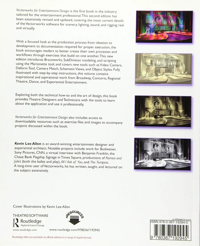 covers the complete design process for using Vectorworks in entertainment industry from developing ideas, visualizing ideas, and evolving them for execution. This second edition has been extensively revised and updated, covering the most current details of the Vectorworks software for scenery, lighting, sound, and rigging; real and virtually.