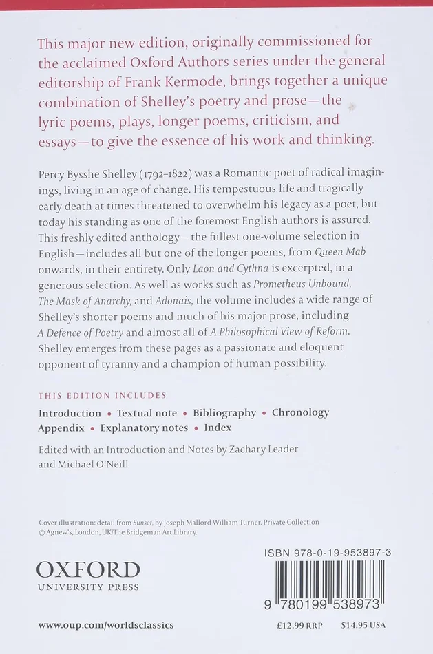 , the volume includes a wide range of Shelley’s shorter poems and much of his major prose, including