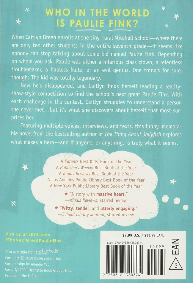 When Caitlyn Breen begins her disorienting new life at Mitchell School–where the students take care of real live goats and study long-dead philosophers, and where there are only ten other students in the entire seventh grade–it seems like nobody can stop talking about some kid named Paulie Fink.