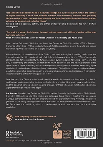 In this revised and updated edition of the CDS’s popular guide to digital storytelling, co-founder Joe Lambert details the history and methods of digital storytelling practices. Using a “7 Steps” approach, Lambert helps storytellers identify the fundamentals of dynamic digital storytelling–from seeing the story, assembling it, and sharing it. As in the last edition, readers of the fourth edition will also find new explorations of the applications of digital storytelling and updated appendices that provide resources for budding digital storytellers, including information about past and present CDS-affiliated projects and place-based storytelling, a narrative-based approach to understanding experience and landscape. A companion website further brings the entire storytelling process to life.