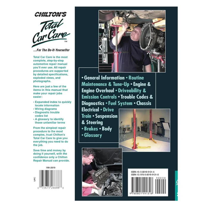 Total Car Care is the most complete, step-by-step automotive repair manual you’ll ever use. All repair procedures are supported by detailed specifications, exploded views, and photographs. From the simplest repair procedure to the most complex, trust Chilton’s Total Car Care to give you everything you need to do the job. Save time and money by doing it yourself, with the confidence only a Chilton Repair Manual can provide.