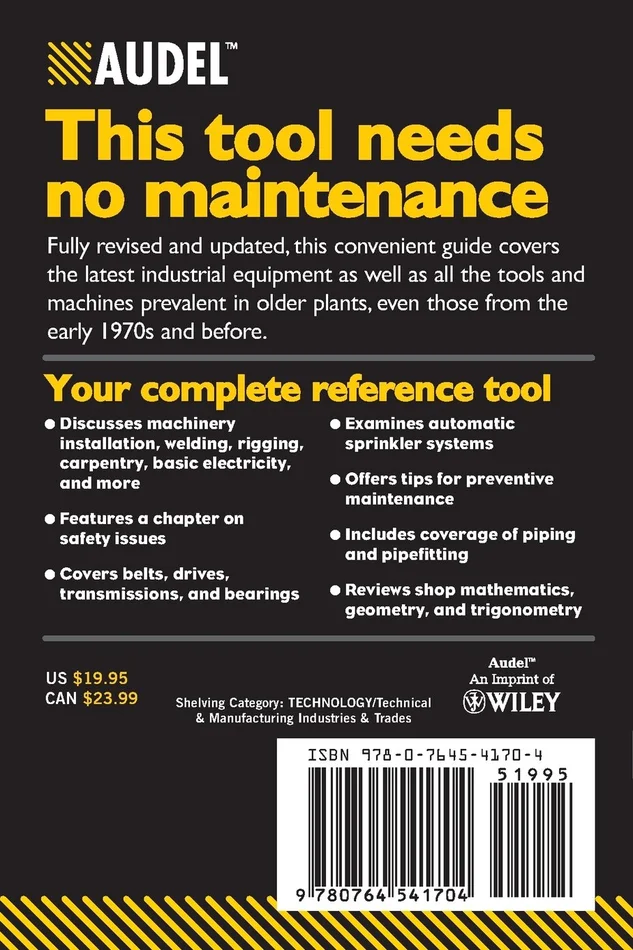 Discusses machinery installation, welding, rigging, carpentry, basic electricity, and more