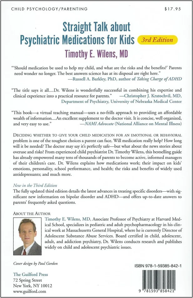 Deciding whether to give your child medication for an emotional or behavioral problem is one of the toughest choices a parent can face. Will medication really help? How long will it be needed? The doctor may say it’s perfectly safe–but what about the news stories about overuse and risks? From experienced child psychiatrist Dr. Timothy Wilens, this bestselling guide has already empowered many tens of thousands of parents to become active, informed managers of their children’s care. Dr. Wilens explains how medications work; their impact on kids’ emotions, personality, school performance, and health; the risks and benefits of widely used antidepressants; and much more.