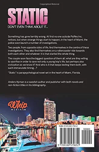 Something has gone terribly wrong. At first no one outside PsiRes Inc. notices, but when strange things start to happen, in the heart of Miami, the police soon launch an investigation. Two people, from opposite sides of life, find themselves in the centre of this investigation. They also find themselves on a rollercoaster ride towards both each other and whatever it is that started the whole thing. The couple soon face the biggest question of them all; what are they willing to sacrifice in order to save not only a young boy*s life, but perhaps also civilization as we know it? And who is it that keeps texting them both, with immaculate timing…? §Static§ is parapsychological novel set in the heart of Miami, Florida.
