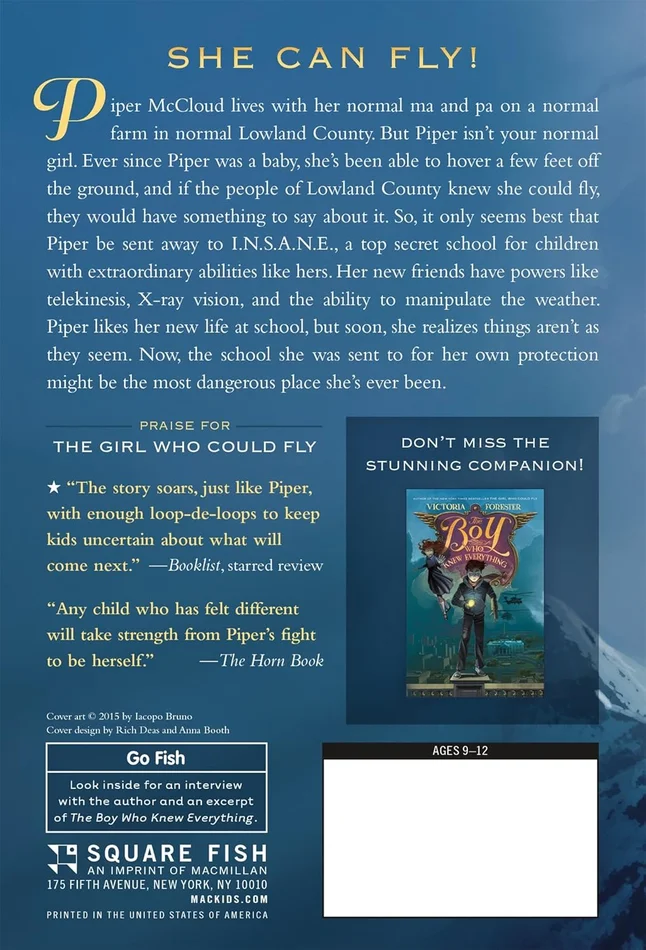 Problem is, the good folk of Lowland County are afraid of Piper. And her ma’s at her wit’s end. So it seems only fitting that she leave her parents’ farm to attend a top-secret, maximum-security school for kids with exceptional abilities.