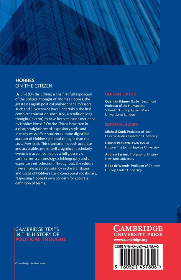 De Cive (On the Citizen) is the first full exposition of the political thought of Thomas Hobbes, the greatest English political philosopher of all time. Professors Tuck and Silverthorne have undertaken the first complete translation since 1651, a rendition long thought (in error) to be at least sanctioned by Hobbes himself. On the Citizen is written in a clear, straightforward, expository style, offering students a more digestible account of Hobbes’ political thought than even Leviathan itself. This new translation is itself a very significant scholarly event.
