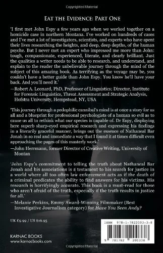 tells the story of violent serial pedophile, Nathaneal Bar Jonah. It does not distort the facts of Bar Jonah*s life but is structured and presented in such a way that expands on those facts and highlights the central character*s ability to effectively and, in some cases, masterfully gain control of his victims, both to do his bidding and to bend to his warped will. Simply writing this book from the perspective of dry, journalistic reportage would fail to convey Bar Jonah*s lifelong honing of his primeval predatory nature. Through the Bar Jonah case, malignant projective-identification is revealed as the primary characteriological patois that is inherent in the manner in which serial murderers and pedophiles take possession of their victims.
