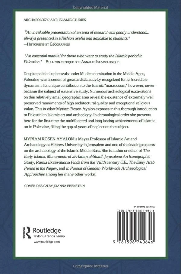 Despite political upheavals under Muslim domination in the Middle Ages, Palestine was a center of great artistic activity recognized for its incredible dynamism. Its unique contribution to the Islamic ※macrocosm,§ however, never became the subject of extensive study. Numerous archeological excavations on this relatively small geographic area reveal the existence of extremely well preserved monuments of high architectural quality and exceptional religious value. This is what Myriam Rosen-Ayalon exposes in this thorough introduction to Palestinian Islamic art and archeology. In chronological order she presents here for the first time the multifaceted and long-lasting achievements of Islamic art in Palestine, filling the gap of years of neglect on the subject.