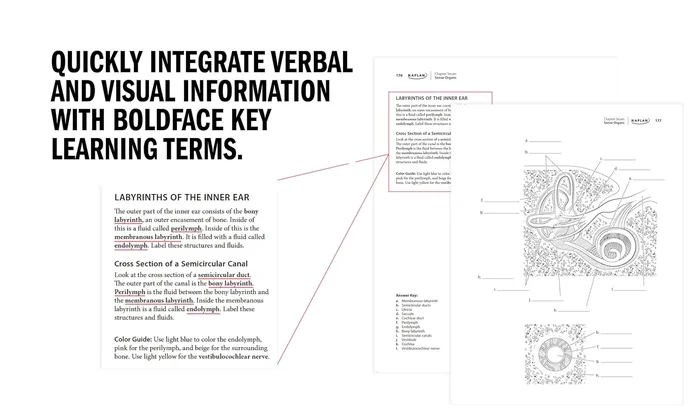 Self-quizzing for each illustration, with convenient same-page answer keys