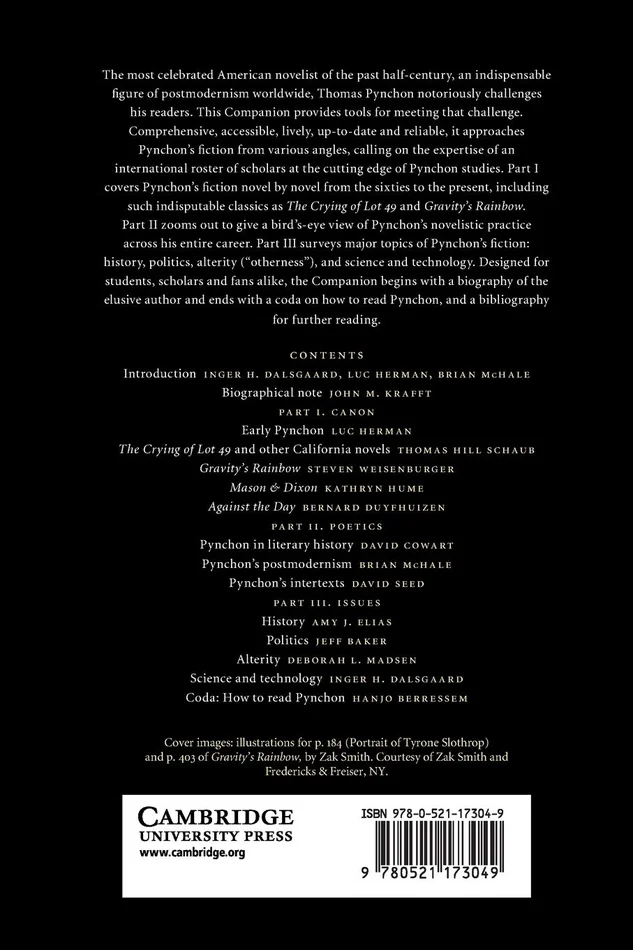 The most celebrated American novelist of the past half-century, an indispensable figure of postmodernism worldwide, Thomas Pynchon notoriously challenges his readers. This Companion provides tools for meeting that challenge. Comprehensive, accessible, lively, up-to-date and reliable, it approaches Pynchon’s fiction from various angles, calling on the expertise of an international roster of scholars at the cutting edge of Pynchon studies. Part I covers Pynchon’s fiction novel-by-novel from the 1960s to the present, including such indisputable classics as The Crying of Lot 49 and Gravity’s Rainbow. Part II zooms out to give a bird’s-eye-view of Pynchon’s novelistic practice across his entire career. Part III surveys major topics of Pynchon’s fiction: history, politics, alterity (‘otherness’), and science and technology. Designed for students, scholars and fans alike, the Companion begins with a biography of the elusive author and ends with a coda on how to read Pynchon and a bibliography for further reading.