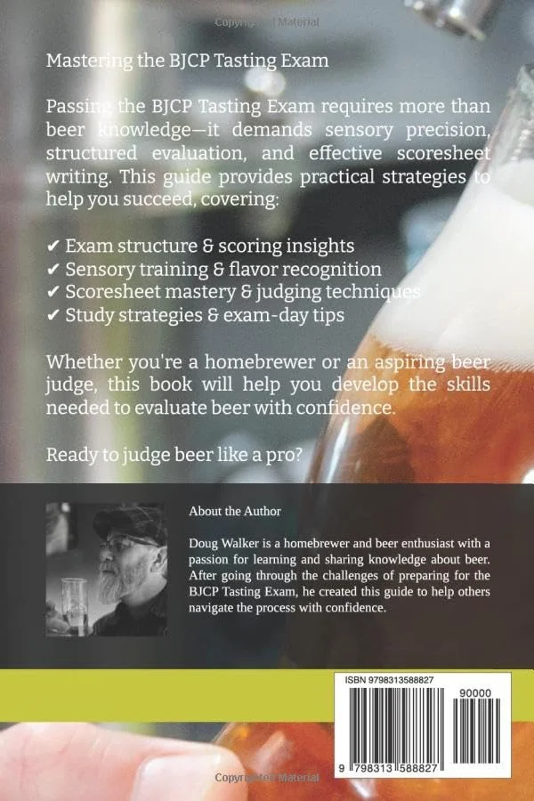 Passing the BJCP Tasting Exam requires more than just beer knowledge〞it demands precision, sensory awareness, and strategic judging techniques. This guide provides a structured approach to preparing for the exam, covering everything from understanding the exam format and scoring system to honing your sensory skills and mastering the BJCP scoresheet. With practical study strategies, style comparisons, and exam-day preparation tips, this book helps aspiring judges gain confidence in evaluating beer like a pro. Whether you’re a seasoned homebrewer or a beer enthusiast looking to level up, this resource equips you with the tools to succeed in the BJCP certification process.