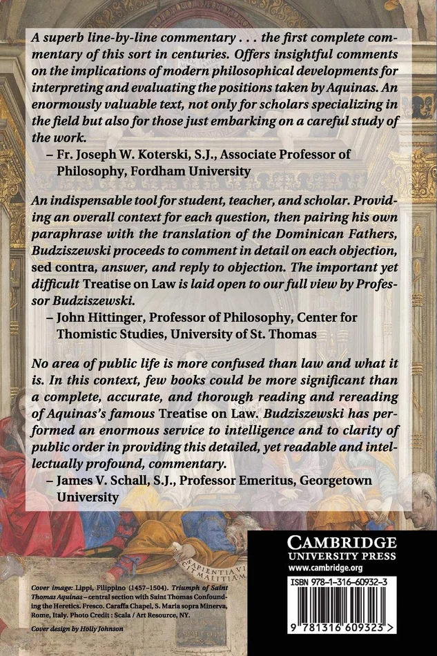 Natural moral law stands at the center of Western ethics and jurisprudence and plays a leading role in interreligious dialogue. Although the greatest source of the classical natural law tradition is Thomas Aquinas’ Treatise on Law, the Treatise is notoriously difficult, especially for nonspecialists. J. Budziszewski has made this formidable work luminous. This book – the first classically styled, line by line commentary on the Treatise in centuries – reaches out to philosophers, theologians, social scientists, students, and general readers alike. Budziszewski shows how the Treatise facilitates a dialogue between author and reader. Explaining and expanding upon the text in light of modern philosophical developments, he expounds this work of the great thinker not by diminishing his reasoning, but by amplifying it.