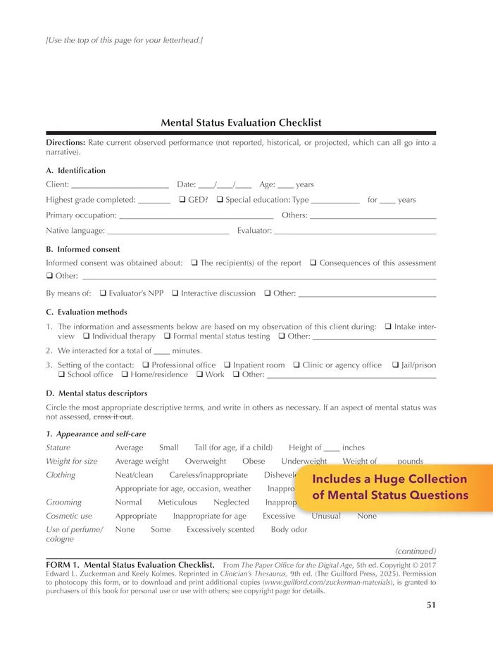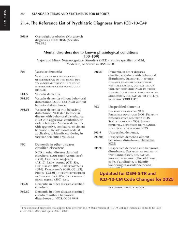 Updated for DSM-5-TR and ICD-10-CM code changes for 2025.