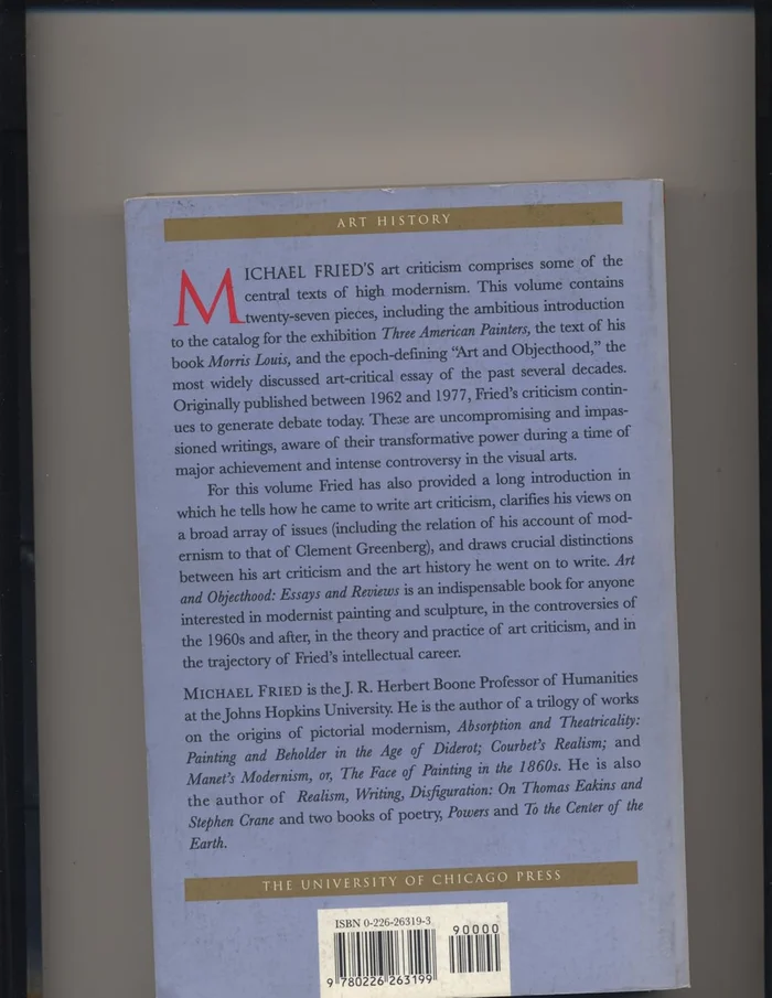 and the renowned Art and Objecthood. Originally published between 1962 and 1977, they continue to generate debate today. These are uncompromising, exciting, and impassioned writings, aware of their transformative power during a time of intense controversy about the nature of modernism and the aims and essence of advanced painting and sculpture.