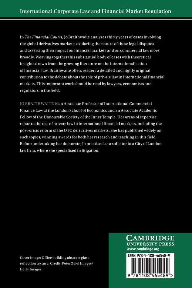 In The Financial Courts, Jo Braithwaite analyses thirty years of cases involving the global derivatives markets, exploring the nature of these legal disputes and assessing their impact on financial markets and on commercial law more broadly. Weaving together this substantial body of cases with theoretical insights drawn from the growing literature on the internationalisation of financial law, Braithwaite offers readers a detailed and highly original contribution to the debate about the role of private law in international financial markets. This important work should be read by lawyers, economists and regulators in the field.