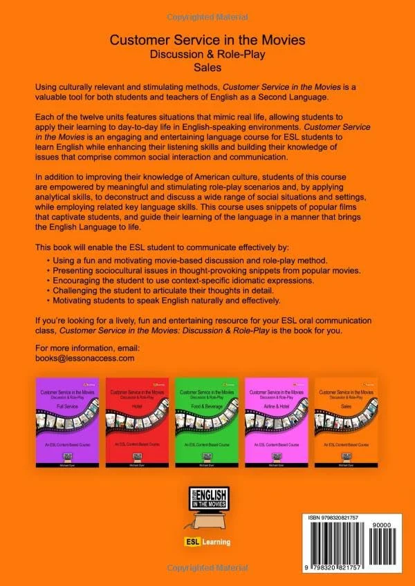 is designed for ESL oral communication classes in a hospitality program. The aim of this course is to improve conversational fluency and refine the four key language skills, while deepening understanding of customer service skills together with social and cultural issues as reflected in English language film. Customer service situation snippets from well-known movies provide engaging, language-rich, audio-visual language model. Critical analysis and discussion of (near) real-world social situations portrayed in contemporary movies provides ideal opportunity for the language student to improve language skills in a motivating and entertaining manner.